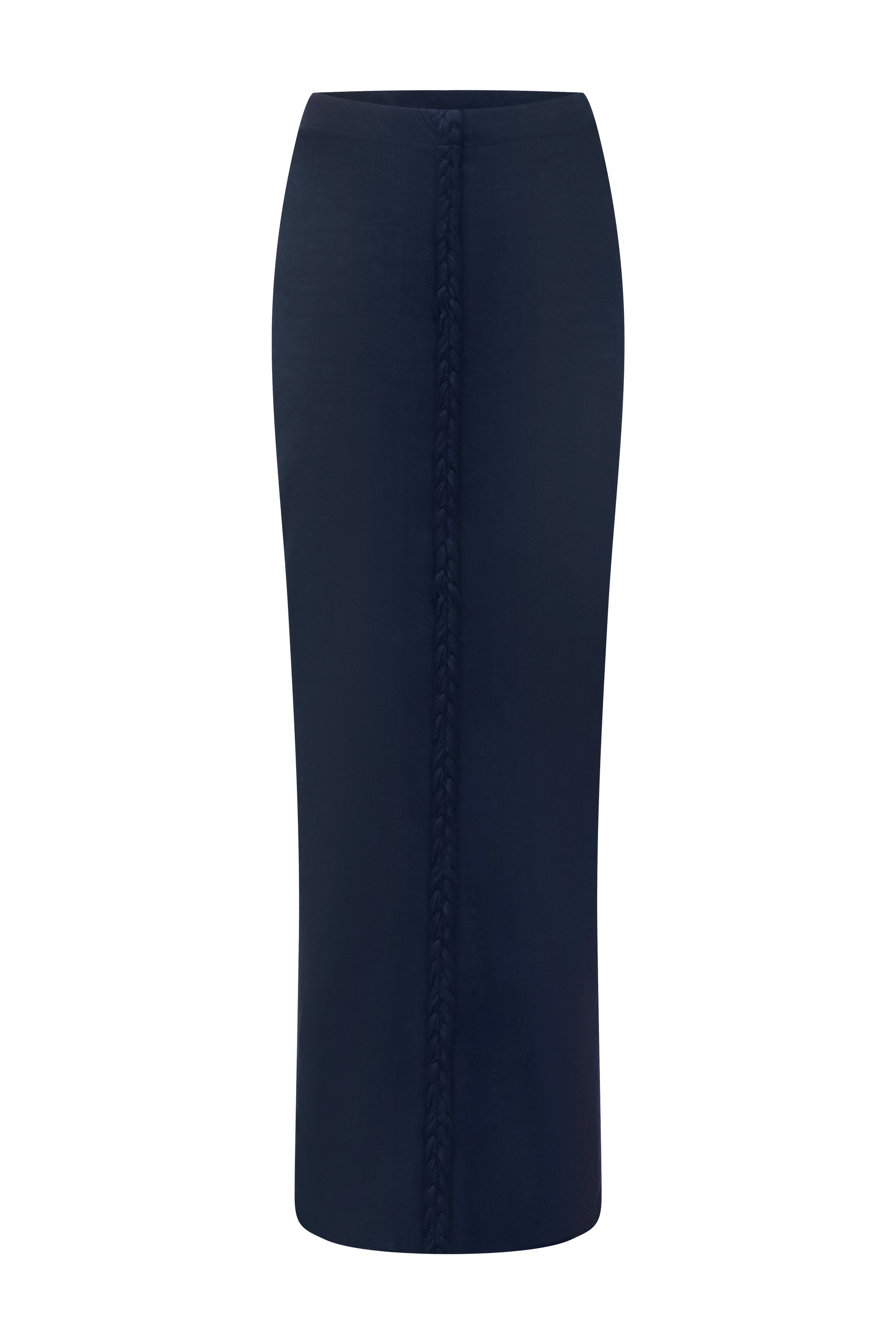 The Gia Skirt delivers timeless elegance with modern ease. Designed in soft stretch jersey, this floor-length silhouette skims the body beautifully and features a signature hand-braided detail down the front for a subtle, sculptural effect. Effortless and versatile, it transitions seamlessly from day to night with refined sophistication.