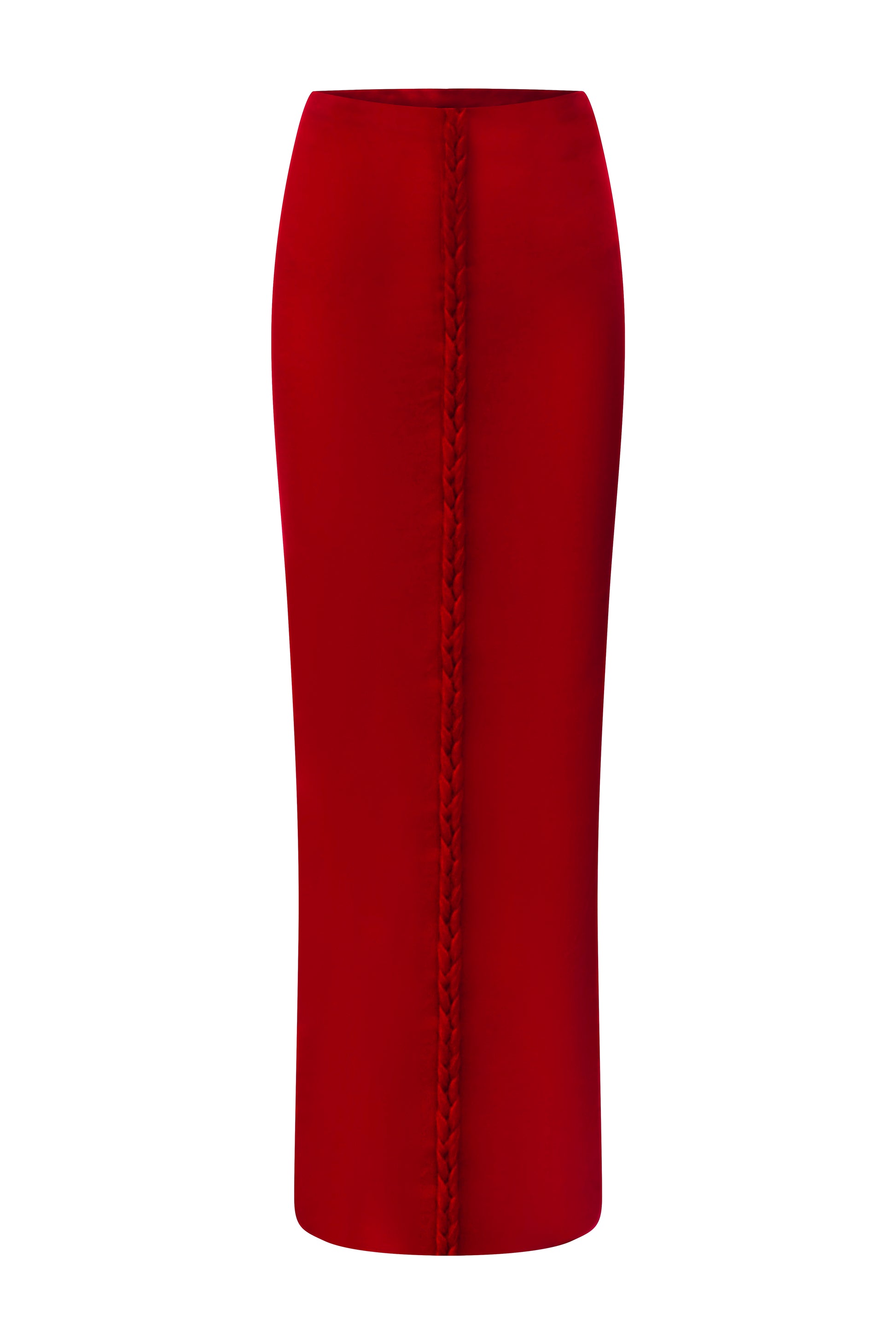 The Gia Skirt delivers timeless elegance with modern ease. Designed in soft stretch jersey, this floor-length silhouette skims the body beautifully and features a signature hand-braided detail down the front for a subtle, sculptural effect. Effortless and versatile, it transitions seamlessly from day to night with refined sophistication.