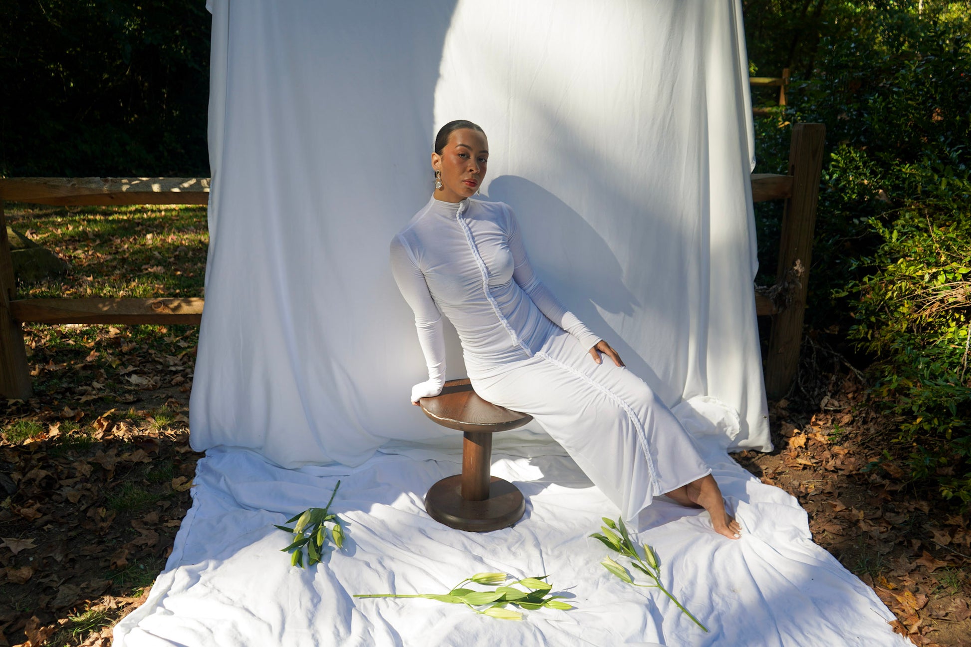 The Gia Skirt delivers timeless elegance with modern ease. Designed in soft stretch jersey, this floor-length silhouette skims the body beautifully and features a signature hand-braided detail down the front for a subtle, sculptural effect. Effortless and versatile, it transitions seamlessly from day to night with refined sophistication.