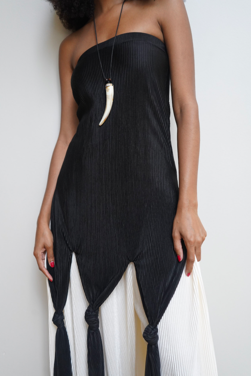 Refined yet striking, the Robin Skirt brings sculptural elegance to everyday wear. Designed in lightweight pleated plissé fabric, this high-waisted midi skirt features dramatic knot tie details along the hemline for added movement and texture. The clean, streamlined fit through the hips balances beautifully with the volume and artistry at the bottom, making it the ideal companion to the Robin Top or a standalone statement piece. Style it knotted for a structured silhouette or let the ties flow for a more relaxed, fluid shape. Can also be worn as a top.